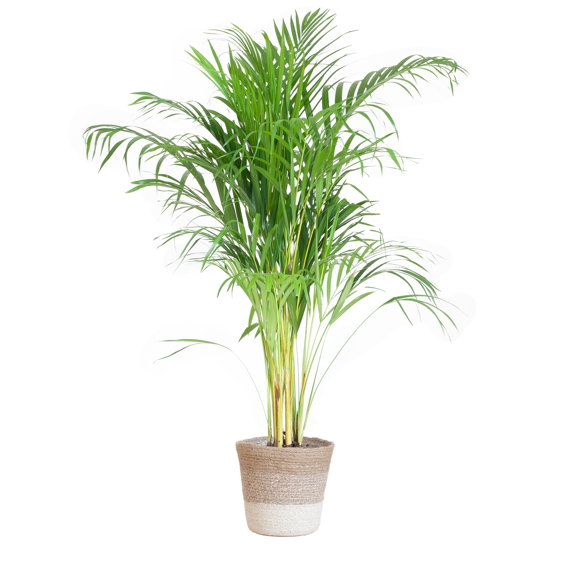 Die Goldpalme, auch Areca-Palme, Dypsis lutescens oder Chrysalidocarpus lutescens genannt, ist eine üppige, grüne Zimmerpflanze mit federartigen Blättern. Diese Blätter sind anmutig und nützlich zugleich. Die Areca-Palme ist eine stark luftreinigende Zimmerpflanze. Die Goldpalme hat es in sich. Mit seinen anmutigen Blättern und seinem vollen Wuchs sorgt er für einen strahlenden Auftritt im Wohnzimmer. Die Areca-Palme ist Teil des Air So Pure-Labels, was bedeutet, dass sie eine stark luftreinigende Zimmerpflanze ist. Beispielsweise ist die Dypsis lutescens gut darin, alle Arten von Chemikalien aus der Luft zu filtern, wie zum Beispiel Benzol und Formaldehyd. Darüber hinaus hilft diese Zimmerpflanze, die Luftfeuchtigkeit aufrechtzuerhalten; Die Pflanze kann große Mengen Wasser verdunsten.
