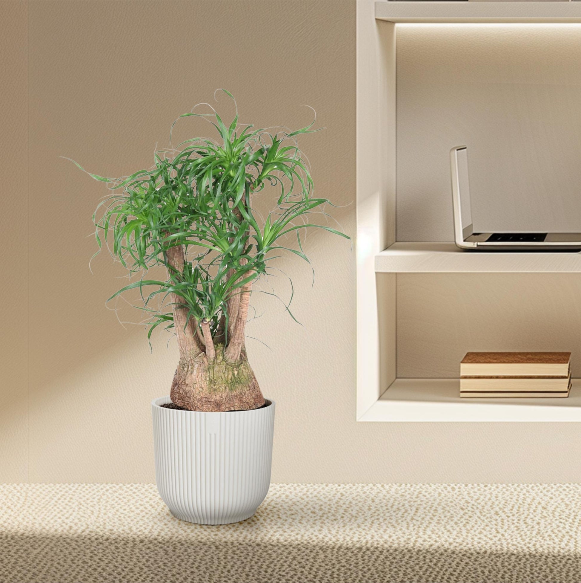- Die Beaucarnea hat einen dicken, breiten Stamm, der sich nach oben verjüngt.
