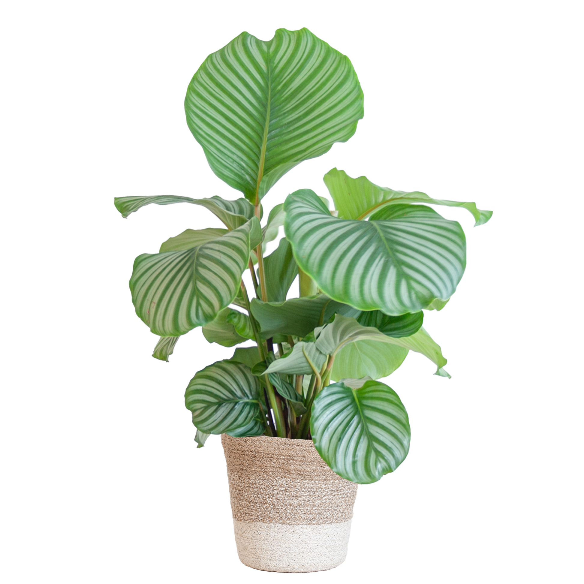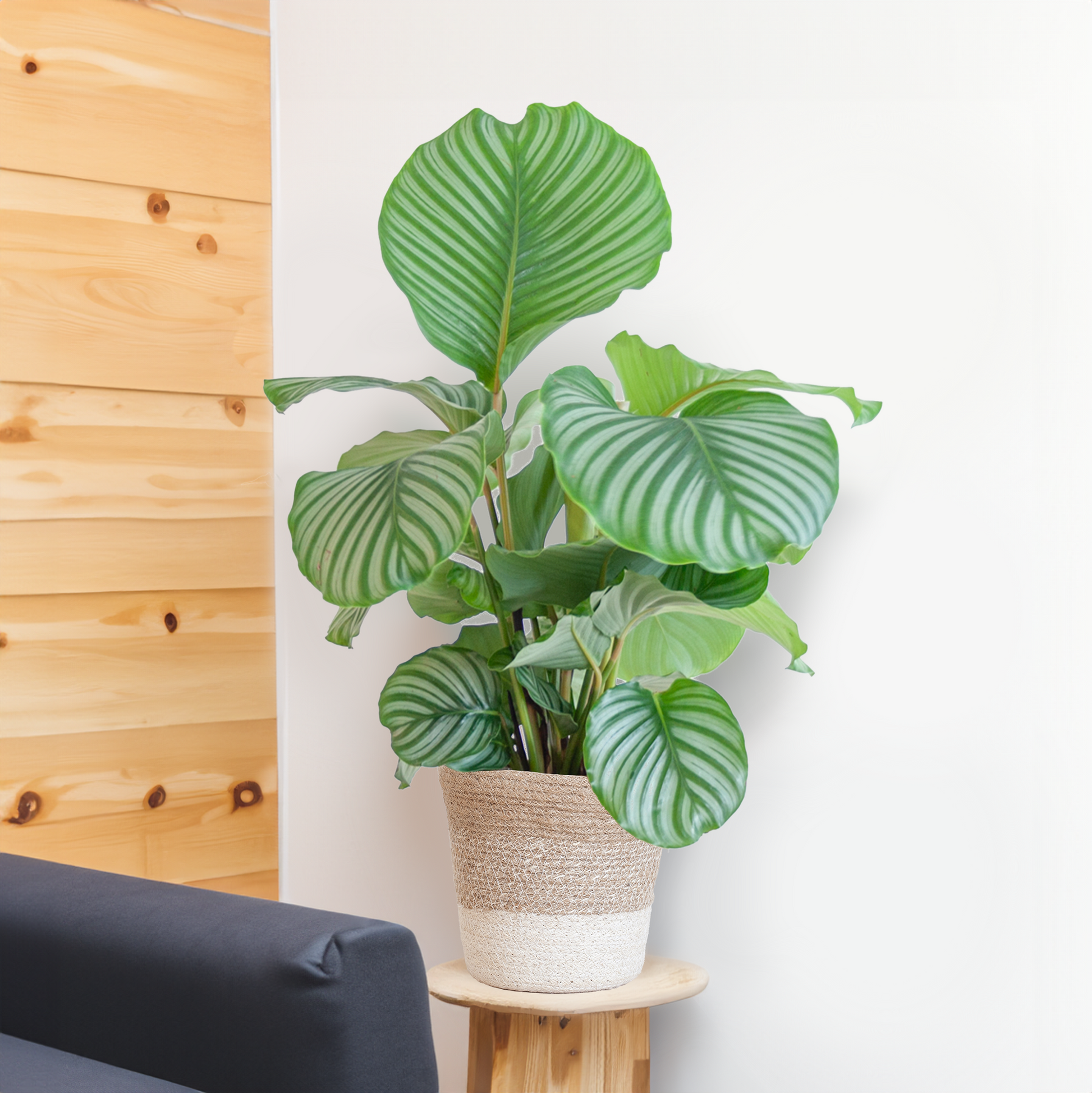 Ursprünglich aus dem südamerikanischen Dschungel stammend, gedeiht die Calathea in feuchten und schattigen Umgebungen. Aufgrund der Größe und Festigkeit ihrer Blätter werden diese gelegentlich als Verpackungsmaterial verwendet. In Südamerika werden manchmal Fischprodukte in Calathea-Blätter eingewickelt. Wir lassen sie jedoch lieber auf der Fensterbank erstrahlen!