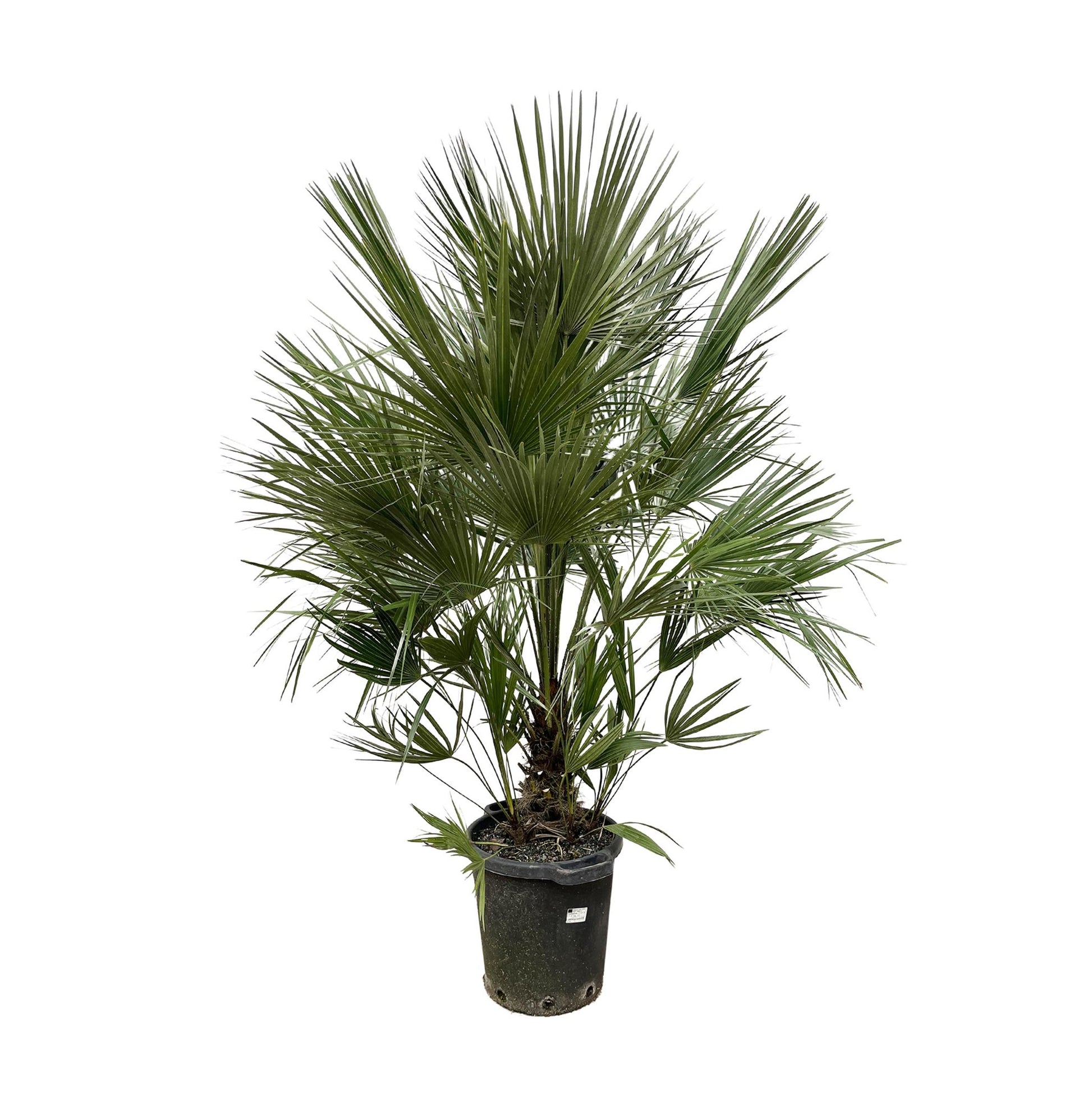 - Die Chamaerops Humilis compact, auch bekannt als Zwergpalme, hat ein kompaktes Wachstum mit eleganten, fächerförmigen Blättern, die tiefgrün sind.