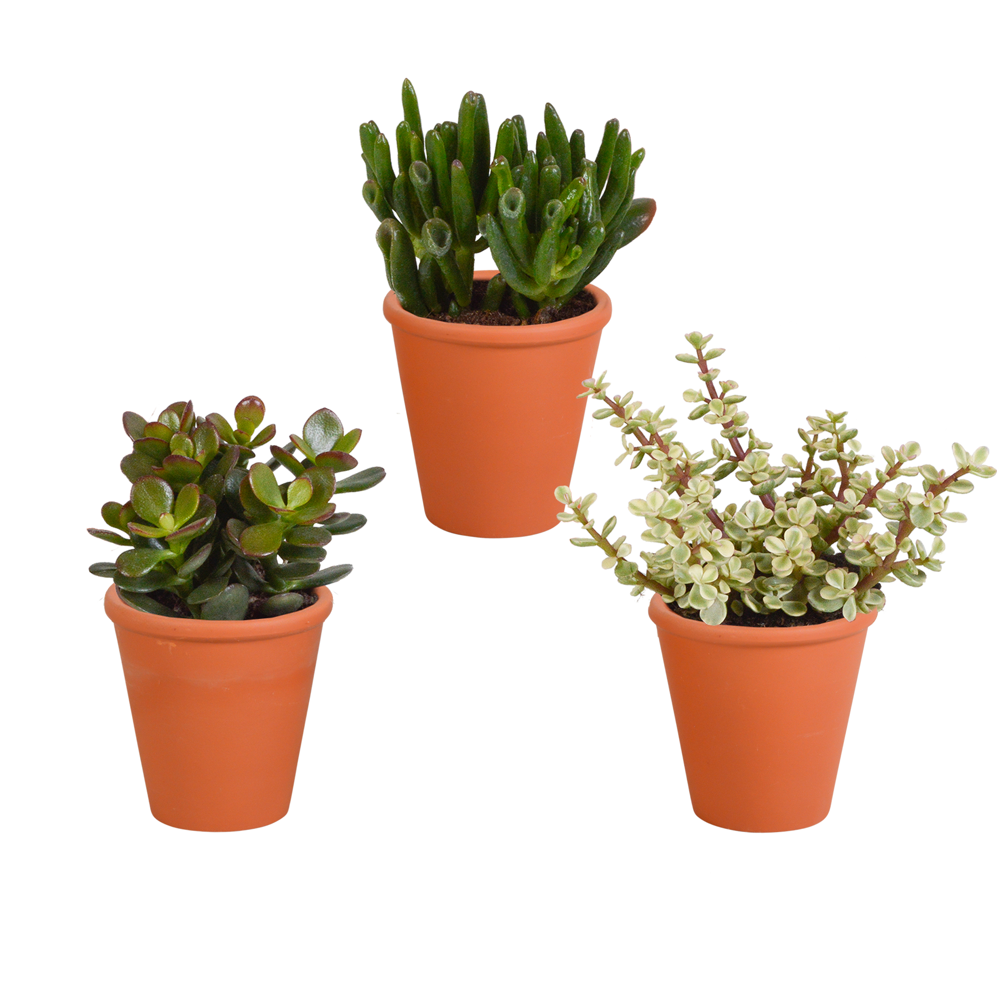 Crassula-Mix 8,5 cm - 3x - in terracotta pot