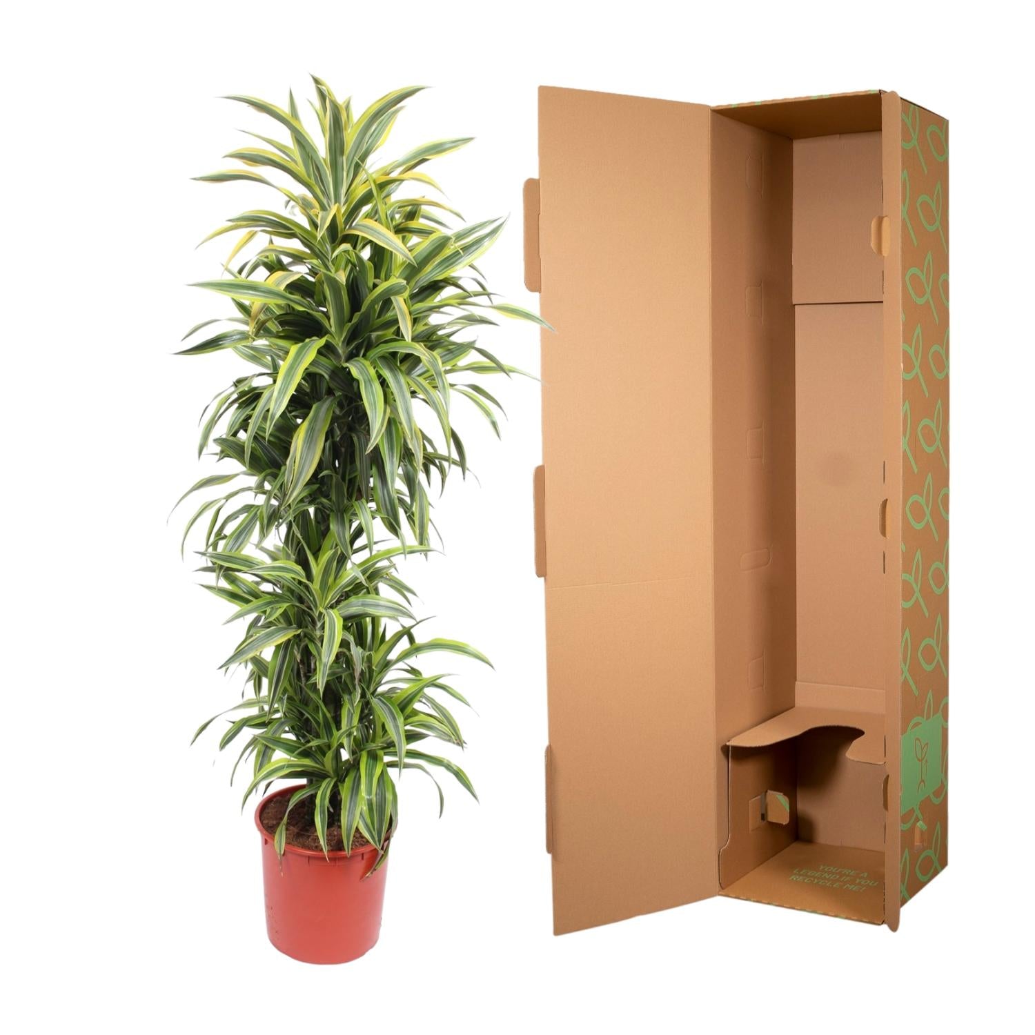 Wir verpacken Ihre Produkte in einer stabilen, speziell für (Zimmer-)Pflanzen entwickelten Box. Die Pflanzen und die Blumenerde sind durch eine Schutzfolie geschützt. Die Zimmerpflanzen werden in der Box fixiert, sodass Ihre Pflanze frisch, gesund und unbeschädigt ankommt.