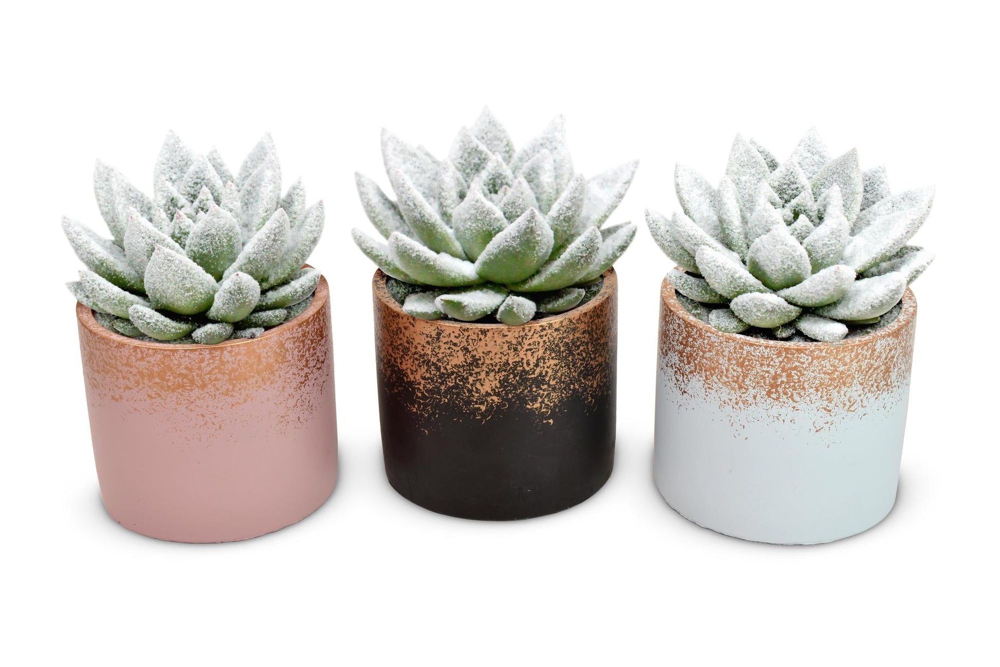 Echeveria Natural + Snow in Lara Ceramics - 3 stuks - Ø8,5cm - ↕11cm
