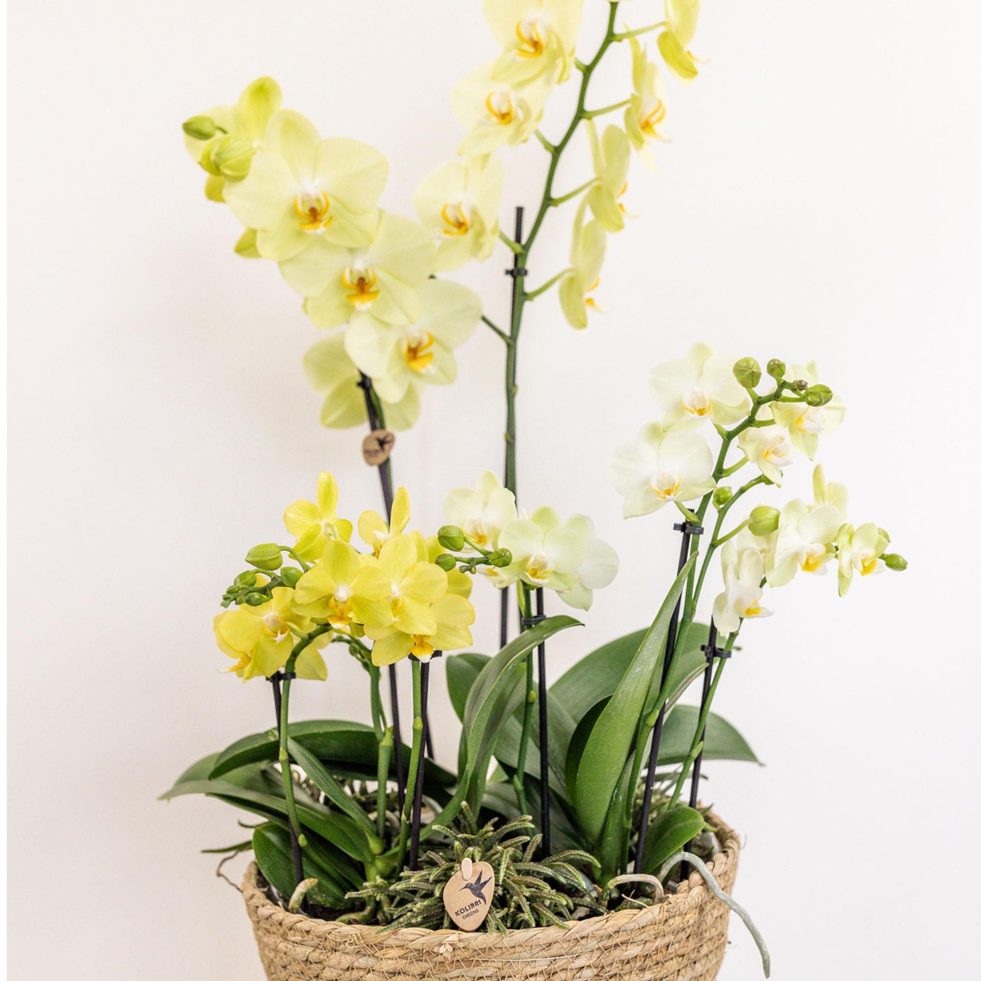 Die Feldeinlage kann mit einer Kolibri-Orchidee von 12 Zentimetern, zwei Kolibri-Orchideen von 9 Zentimetern und drei Kolibri-Grüns von 6 Zentimetern gefüllt werden.