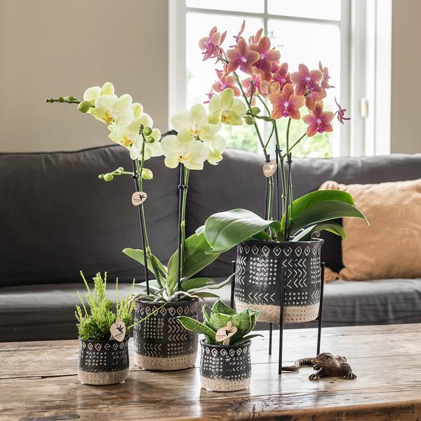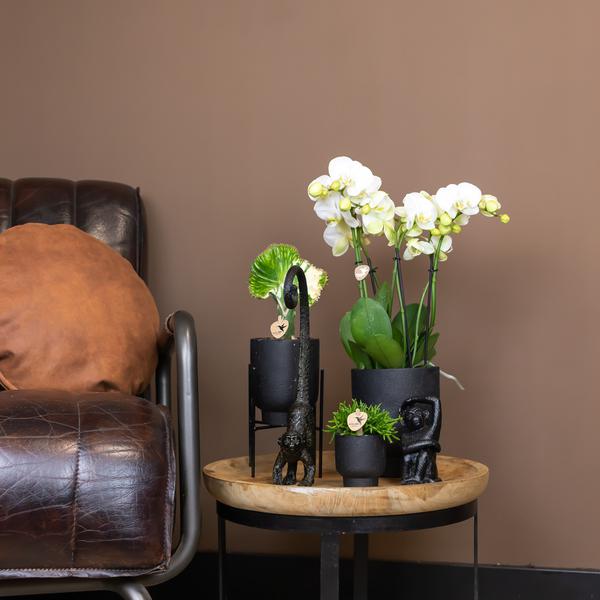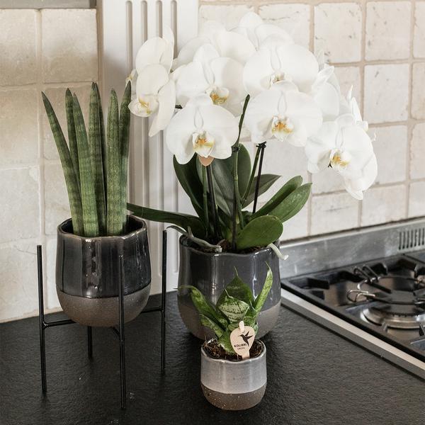 Verleihen Sie Ihrem Pflanzenset einen exklusiven Look mit dem Metallfuß. Sie können den Metallfuß verwenden, um Ihre Pflanze anzuheben. Diese Erhöhung verleiht Ihrem Pflanzenset sofort Atmosphäre. Der Metallfuß hat eine Höhe von 18,5 cm und einen Durchmesser von 14 cm. Dadurch wird die Pflanze auf eine Höhe von 11 cm oder 7,5 cm angehoben, je nachdem, wie Sie sie platzieren. Wir bieten den Metallfuß in drei verschiedenen Farben an: weiß, schwarz und gold. Da er in verschiedenen Farben erhältlich ist, passt er garantiert zu jeder Einrichtung.