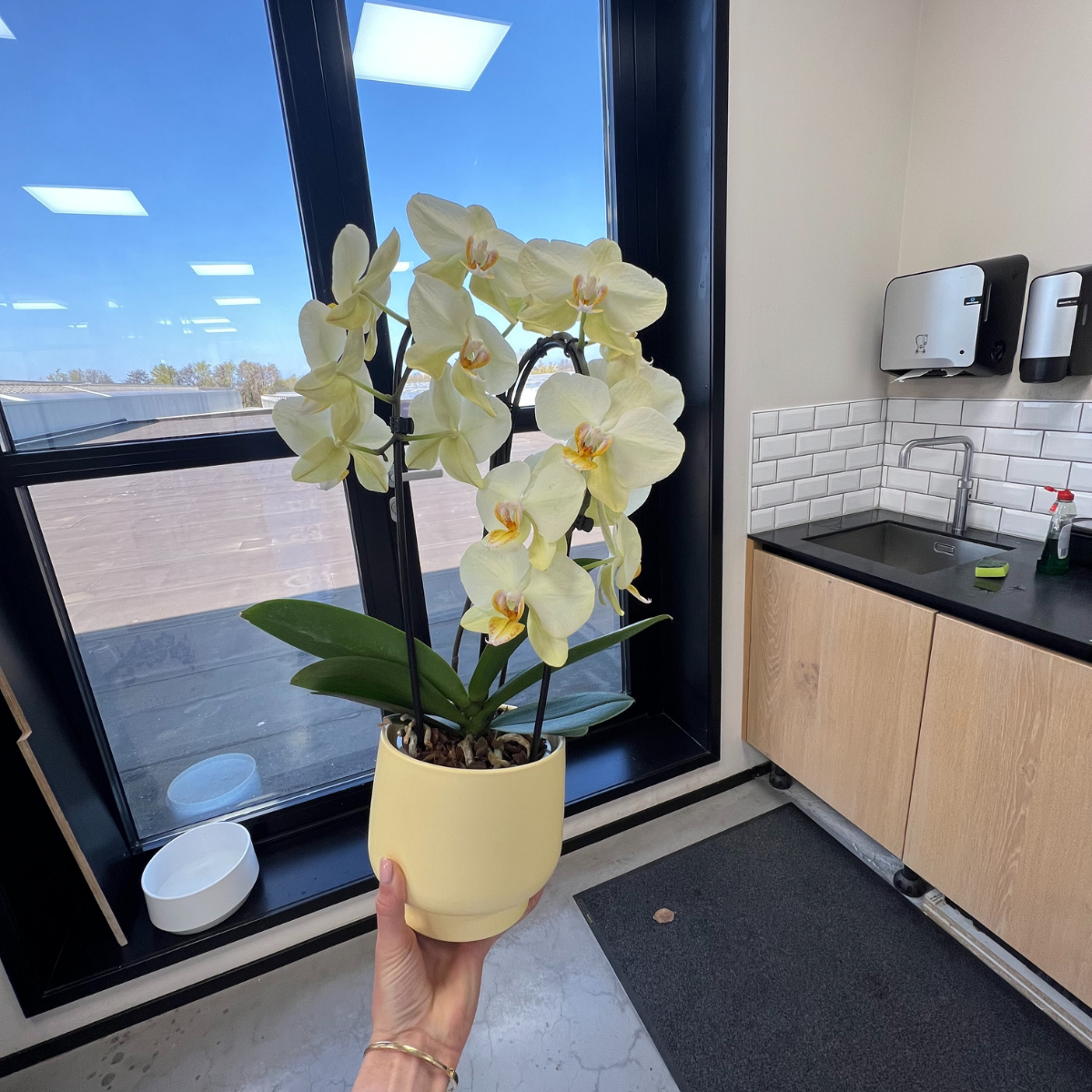 Wie niedlich ist dieser buttergelbe Blumentopf? Die sanfte, fröhliche Farbe passt perfekt auf den Ostertisch – und auch danach bleibt er ein schöner Hingucker im Zuhause. Erhältlich in den Topfgrößen 9 und 12 cm, ideal für kleinere Pflanzen. Kombiniere ihn mit einer pastellfarbenen Kolibri Orchidee und dein Look ist komplett!