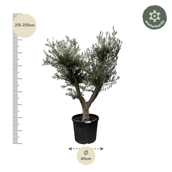 - Aussehen der Pflanze: Die Olea Europaea, auch bekannt als Olivenbaum, hat ein elegantes Aussehen mit ihren schmalen, silbergrünen Blättern. Der Baum hat einen stabilen, gedrehten Stamm und kann unter den richtigen Bedingungen eine schöne, volle Krone entwickeln.