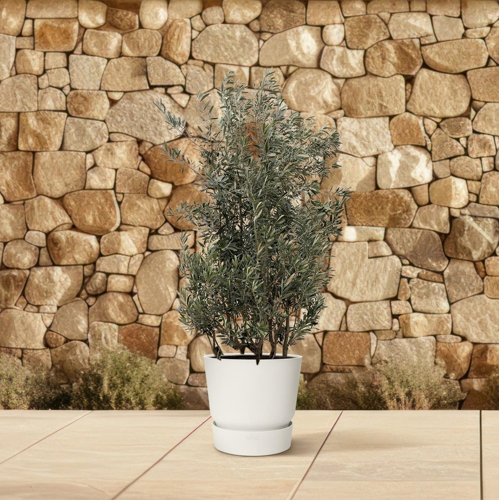 - Aussehen der Pflanze: Die Olea Europaea, auch bekannt als Olivenbaum, hat ein elegantes Aussehen mit ihren schmalen, silbergrünen Blättern. Der Baum hat einen stabilen, gedrehten Stamm und kann unter den richtigen Bedingungen eine schöne, volle Krone entwickeln.