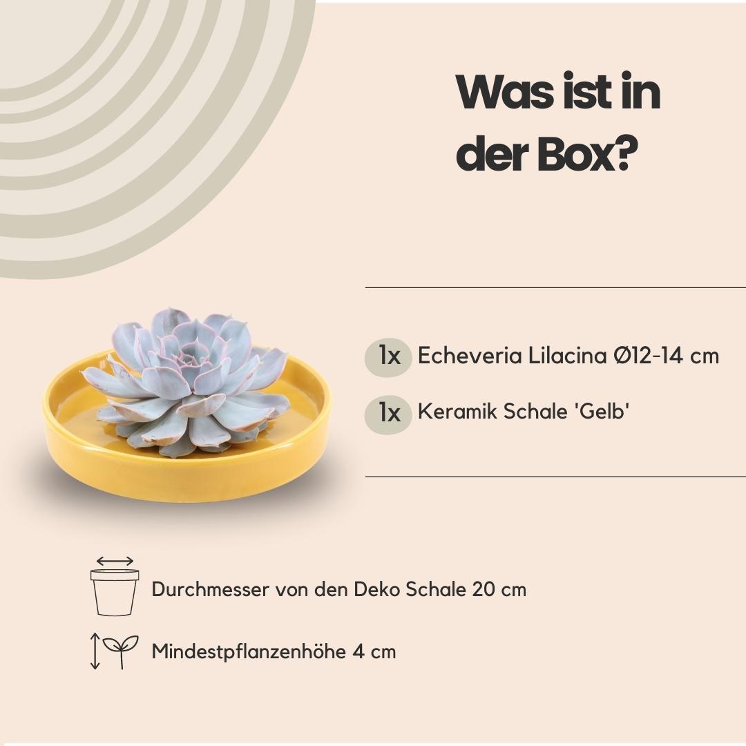 ROOTLESS Succulent Echeveria Lilacina in Schale 'gelb' Ø20 cm - ↕5 cm