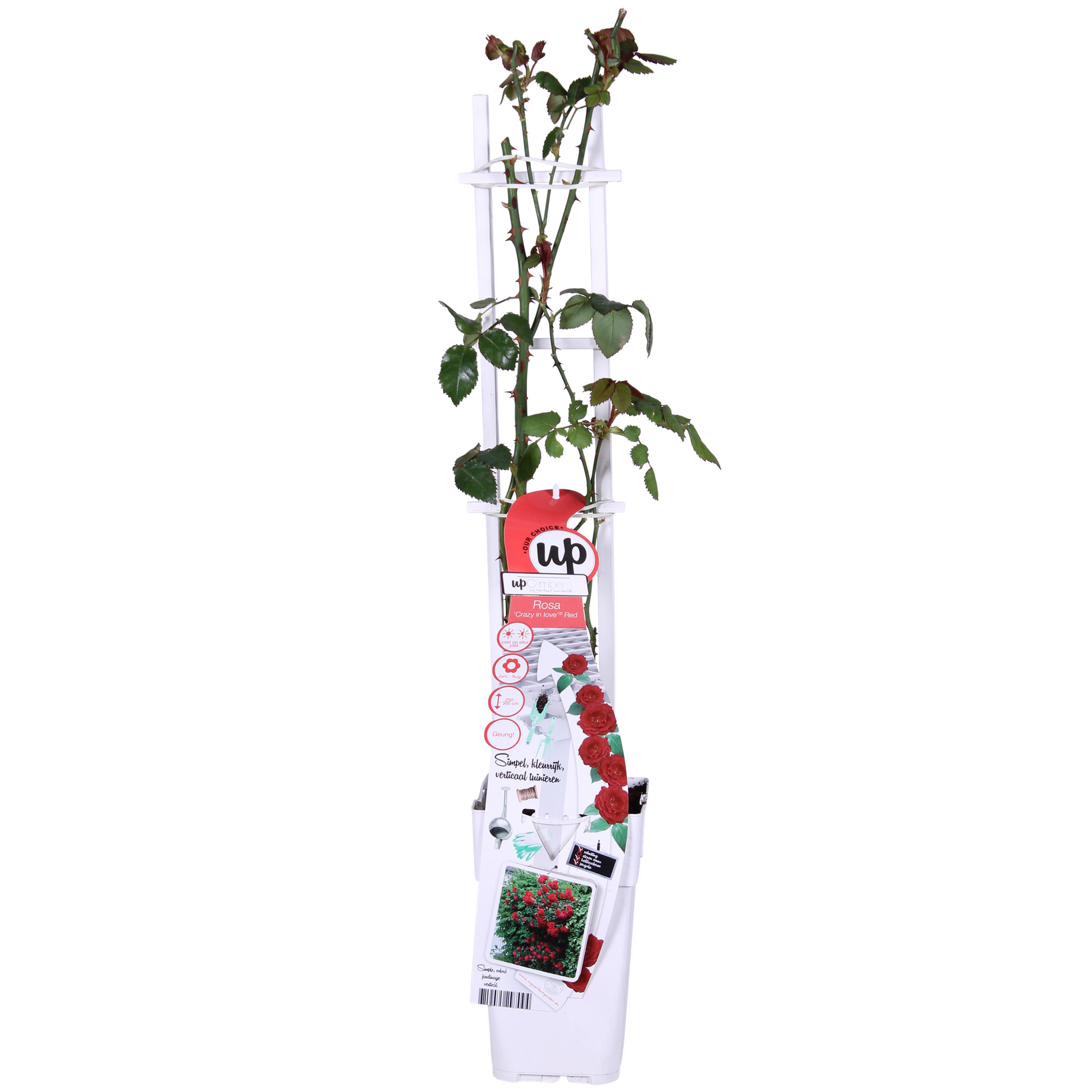 • Die Rosa Crazy in Love 'Red' ist eine auffällige Rose mit tiefroten, samtigen Blüten. Die Blüten sind voll und reich an Blütenblättern, mit einer klassischen Rosenform. Das Laub ist glänzend und dunkelgrün, was einen schönen Kontrast zu den roten Blüten bildet.