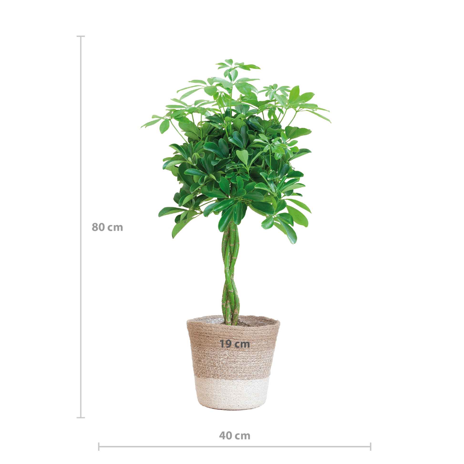 Schefflera Arab Nora mit Pflanzkorb Lissabon weiß - 70cm - Ø21