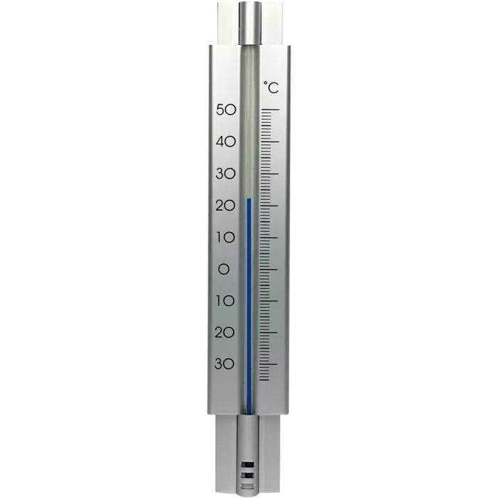 De thermometer is vervaardigd uit metaal, wat zorgt voor een stevige en duurzame behuizing die goed bestand is tegen verschillende weersomstandigheden.