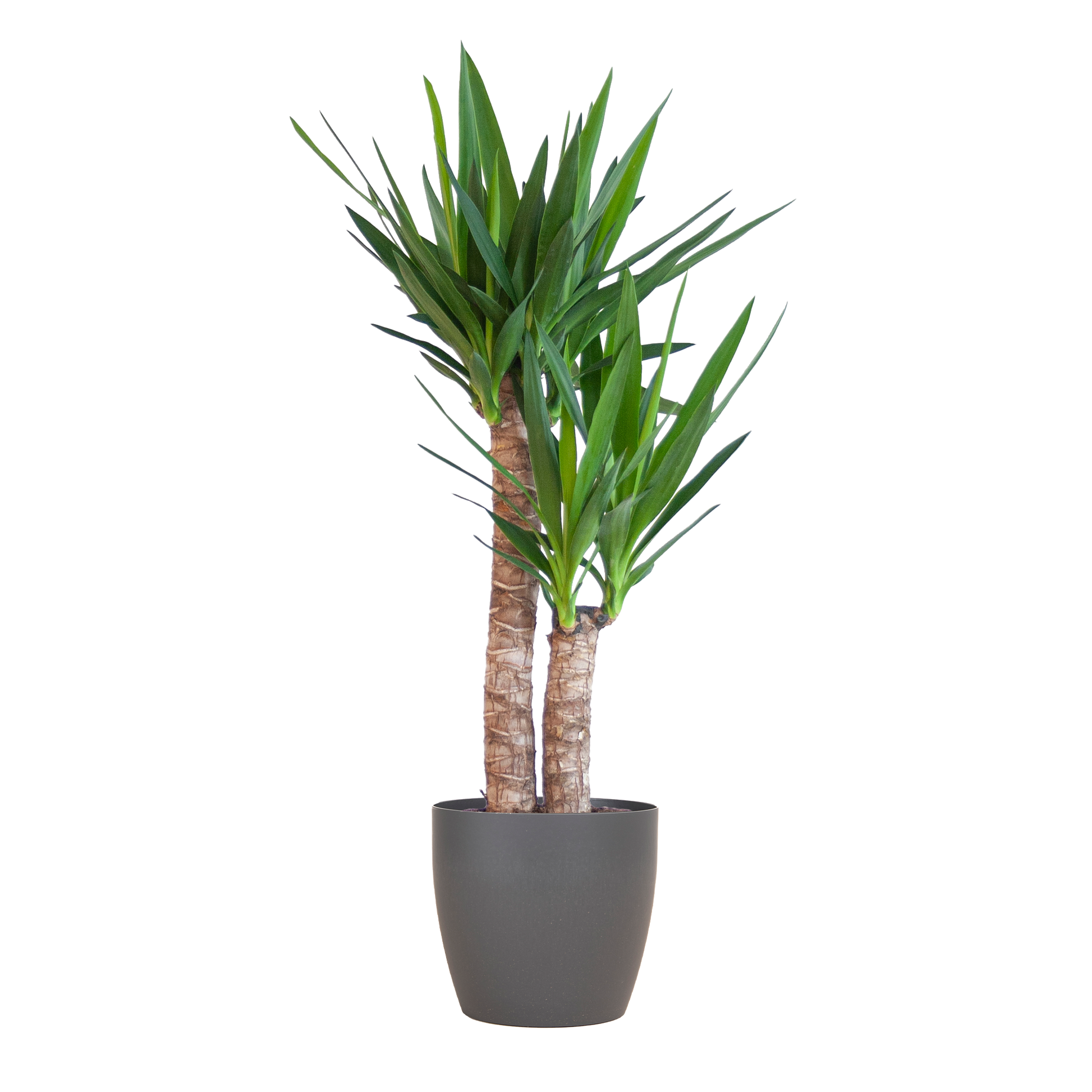 Die Yucca, auch Palmlilie genannt, ist eine beeindruckende grüne Zimmerpflanze mit langen, kräftigen, schwertförmigen Blättern. Diese Blätter verleihen der Pflanze ein robustes und robustes Aussehen und machen sie zu einem echten Hingucker in jedem Interieur.
